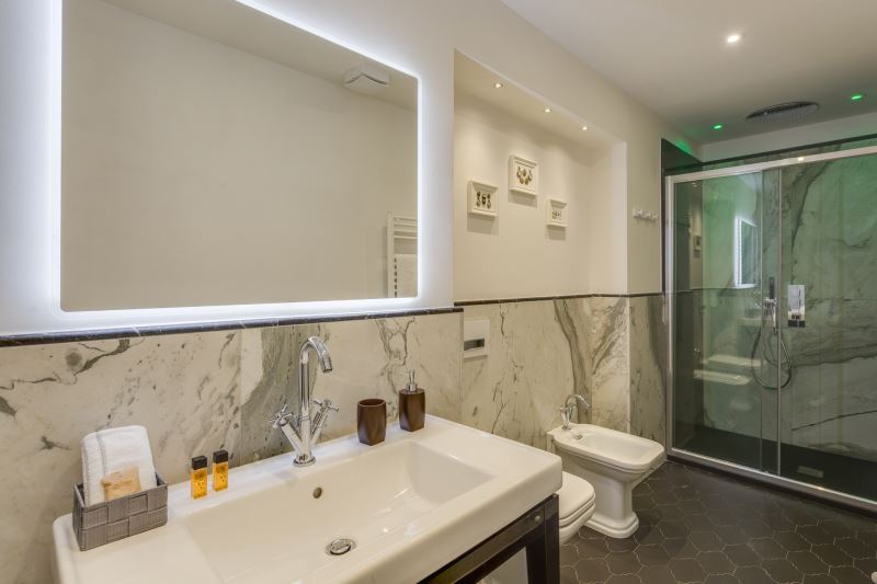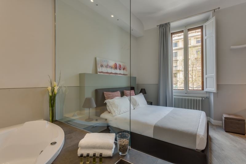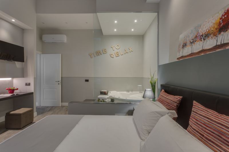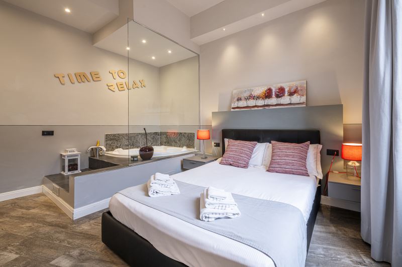L’appartamento Time è composto da due camere matrimoniali (una con vasca idromassaggio), da un soggiorno con divano letto matrimoniale, una tv di 50‘’ a schermo piatto e ampio angolo cottura, da un bagno completamente rivestito in marmo con doccia a soffione e cromoterapia. L’appartamento è dotato di Wi-Fi veloce, tv schermo piatto in ogni stanza, aria condizionata ed è completamente insonorizzato.