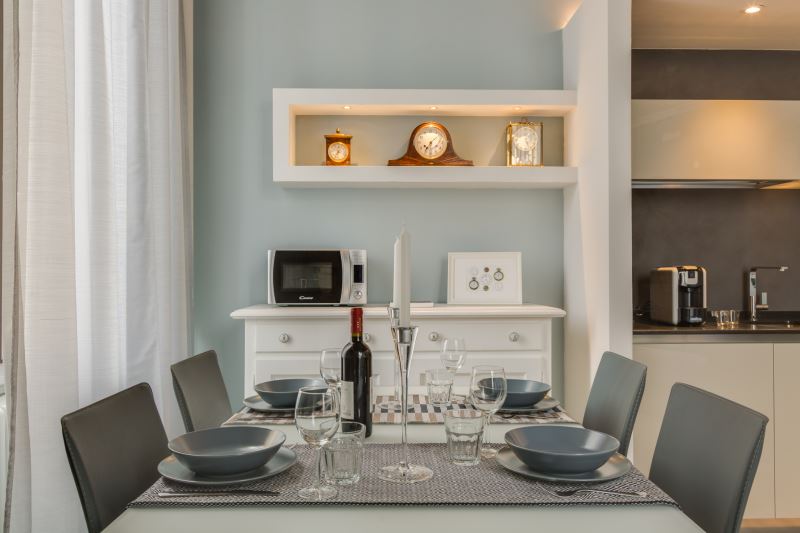 Il tempo regna in questo elegante e raffinato appartamento.