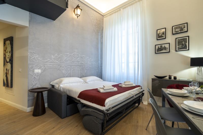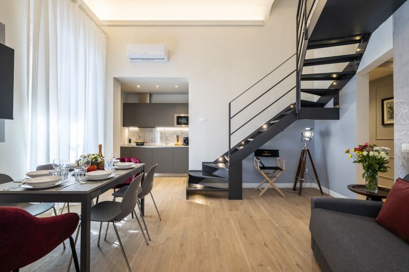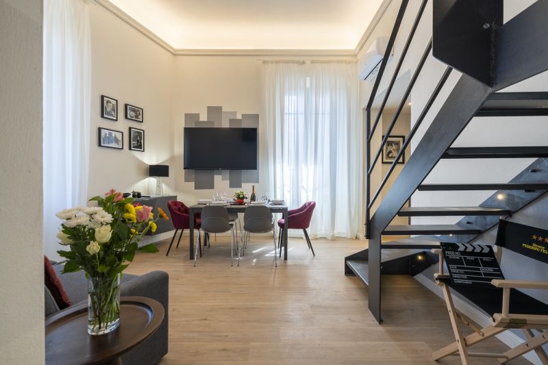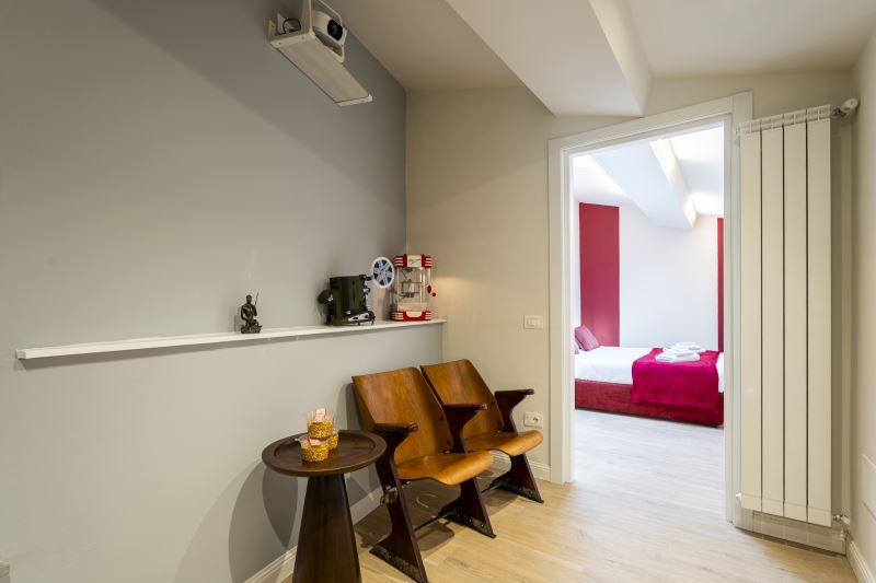 Le stanze sono caratterizzate da stile e arredamento che richiamano al Cinema con vari oggetti di design disposti all'interno dell’appartamento
