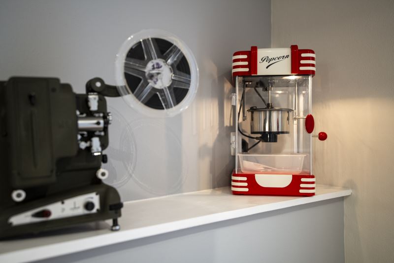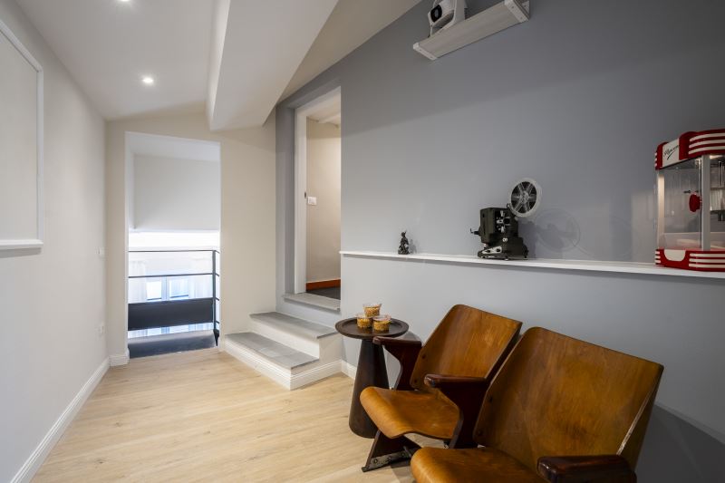 Per gli amanti del cinema, c'è anche una stanza dedicata alla visione di film, con proiettore e poltroncine anni 60 da cinema.