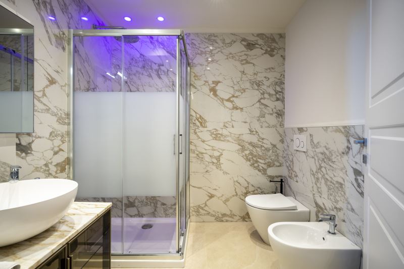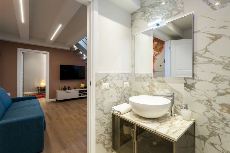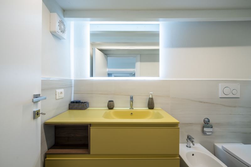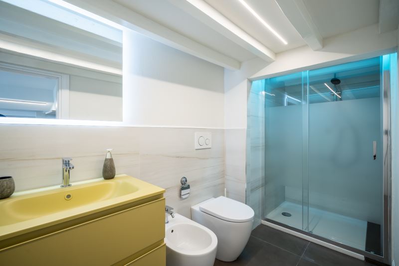 I bagni sono tutti e 2 posizionati vicino alle camere da letto e tutti sono dotati di box doccia con la funzione cromo terapia, sanitari e Kit di cortesia composto da Shampoo e Bagno-schiuma