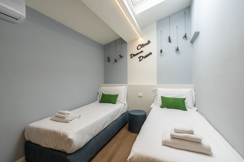 Tutte le camere sono dotate di aria condizionata, una di letto matrimoniale queen-size, l'altra di due letti singoli, dispongono inoltre di smart TV e armadi, le camere sono caratterizzate da design e richiami specifici al tema del viaggio, ogni camera è posizionata vicino ad un bagno garantendo la massima privacy.