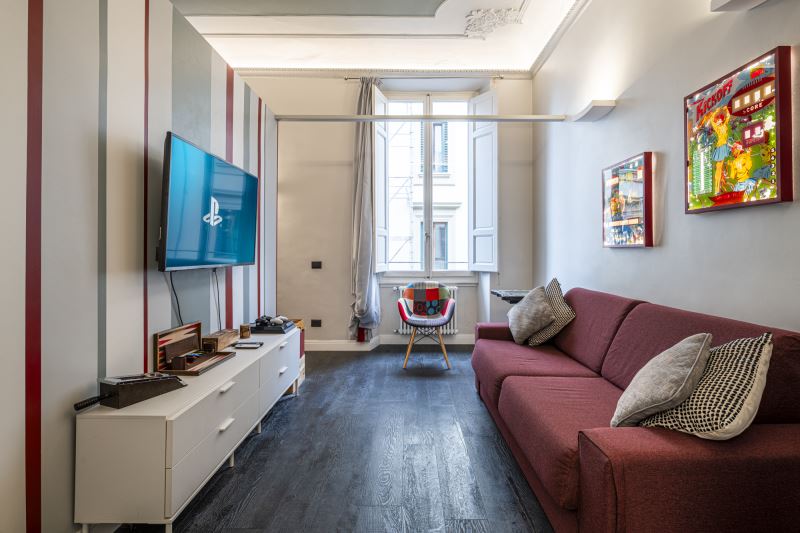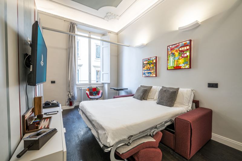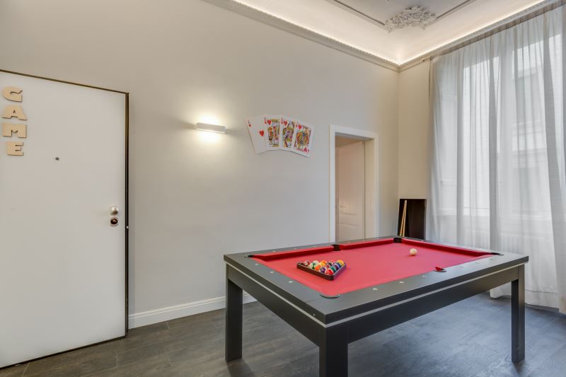 L’appartamento Game è pensato per gli appassionati di giochi che potranno divertirsi giocando con la PS4, sfidandosi a biliardo o altro.